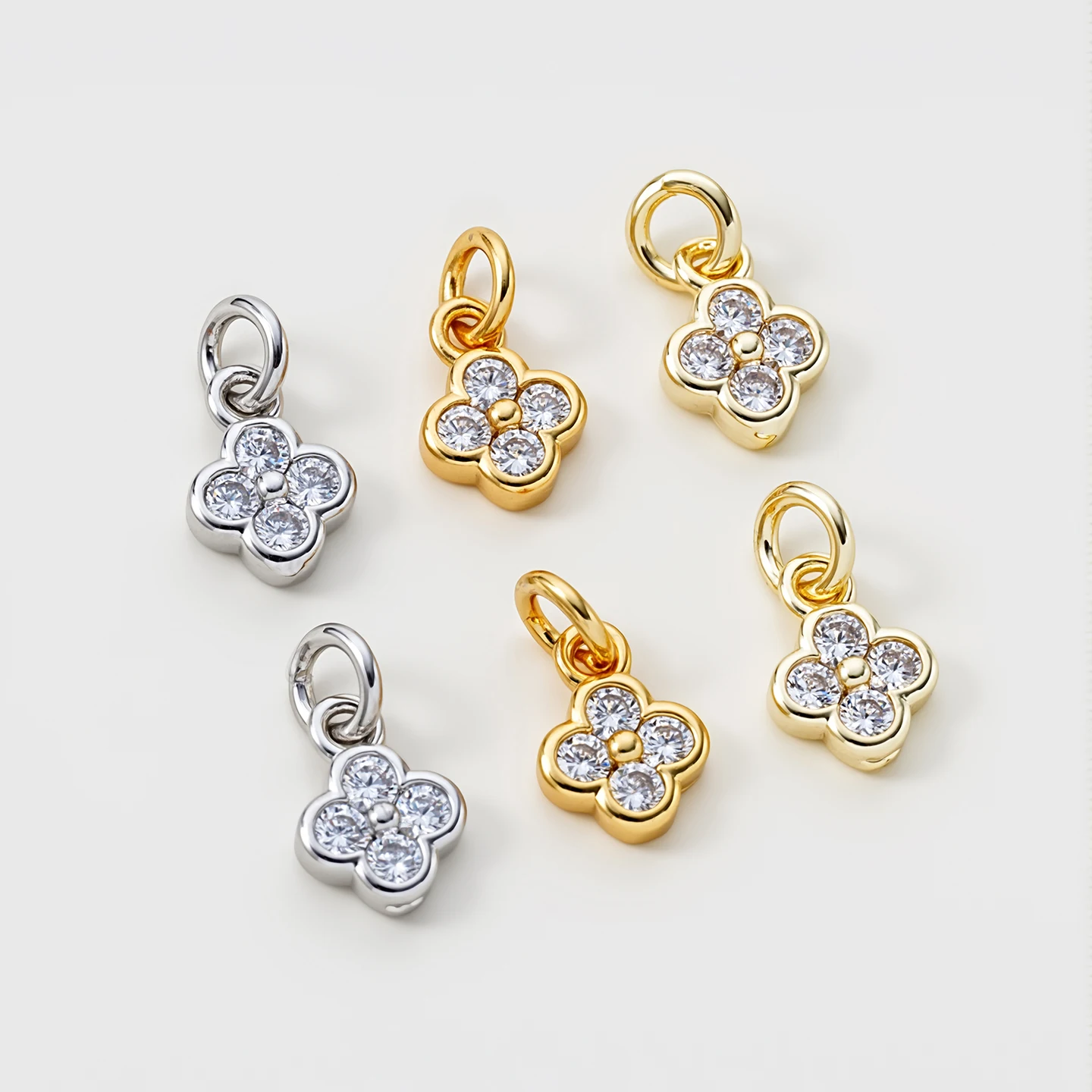 5 Stück/Packung 6mm 14/18K Goldfarben Plattierte Blumen-Anhänger mit Zirkonia für DIY Armband Halskette Schmuckherstellung Zubehör