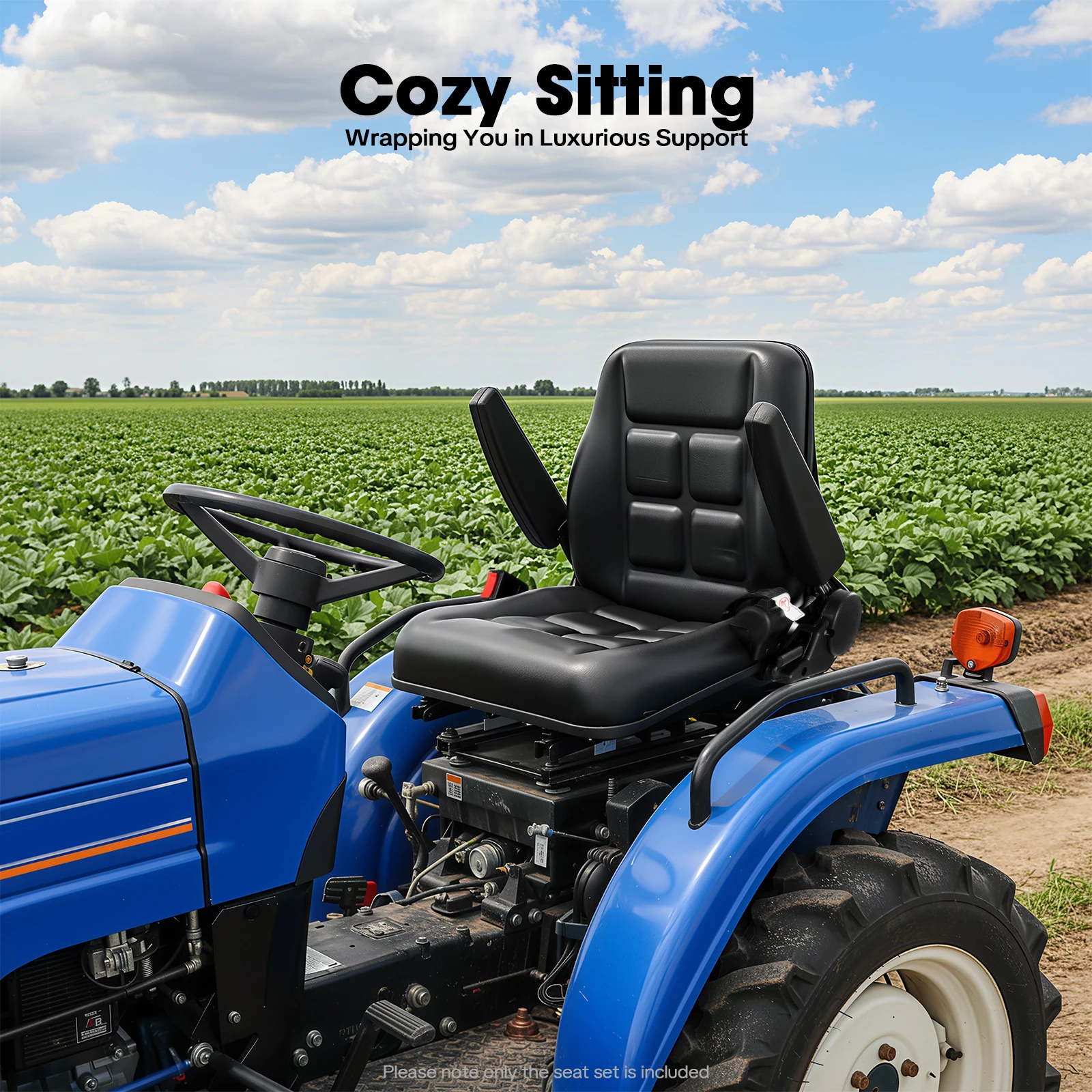 Mähersitz mit hoher Rückenlehne, universeller Gabelstaplersitz für Rasentraktor, Bagger, Kompaktlader, Baggerlader mit Rutschen, Belastung 220,46 Pfund