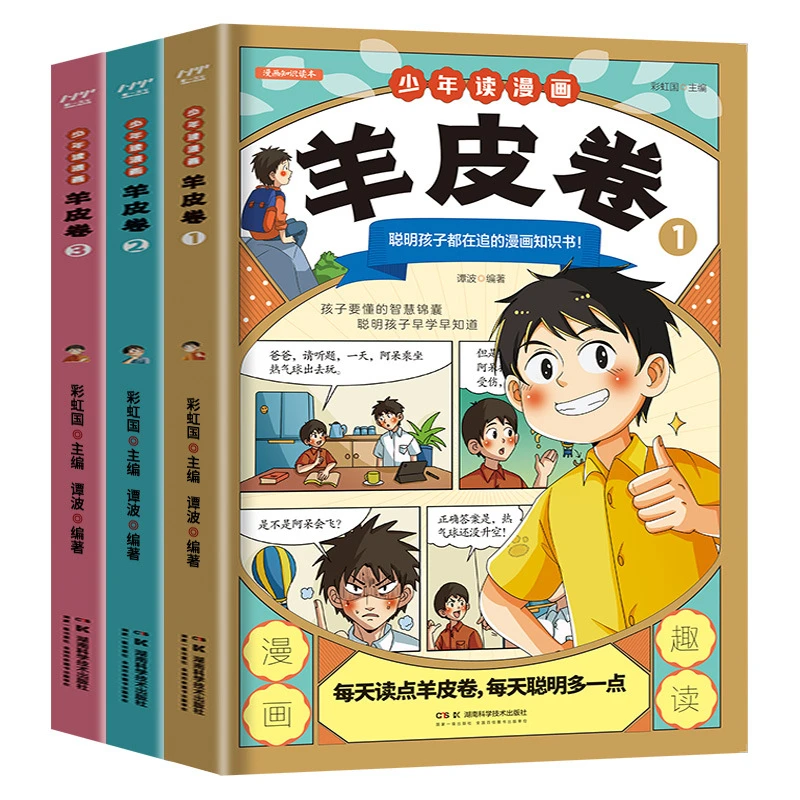 Teenager lesen Comics, Schafslederrollen, außerschulische naturwissenschaftliche Popularisierungsbücher für Grundschüler, Livros Libros
