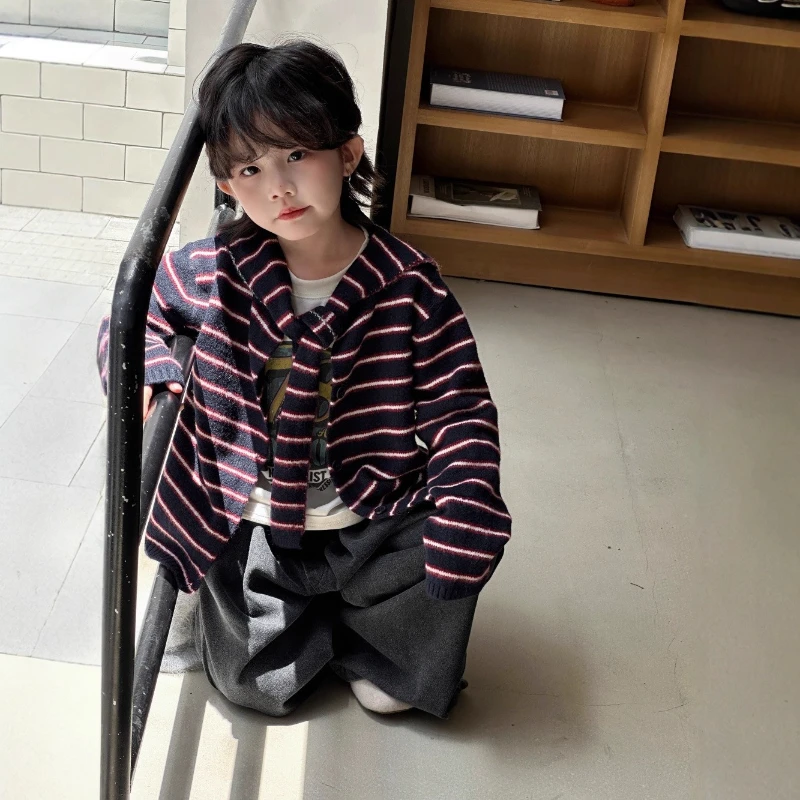 Süßes Mädchen, bunter Regenbogen-gestreifter Pullover, süße Baby-Kinder-Strickkleidung, modisches Kind, High-Street-Strickwaren-Outfit, Alter 4 bis 14 Jahre