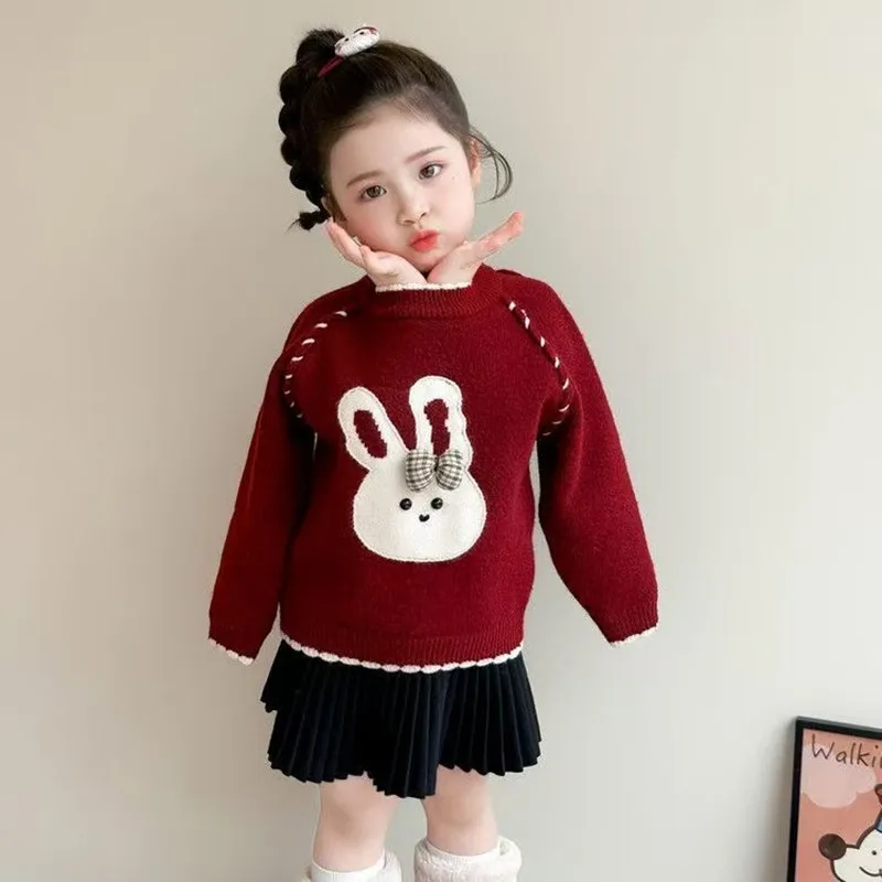 Frühling und Herbst kinder Pullover Mantel Neue Mädchen Baby Verdickte Strickwaren Pullover Neue Jahr Unten Oben