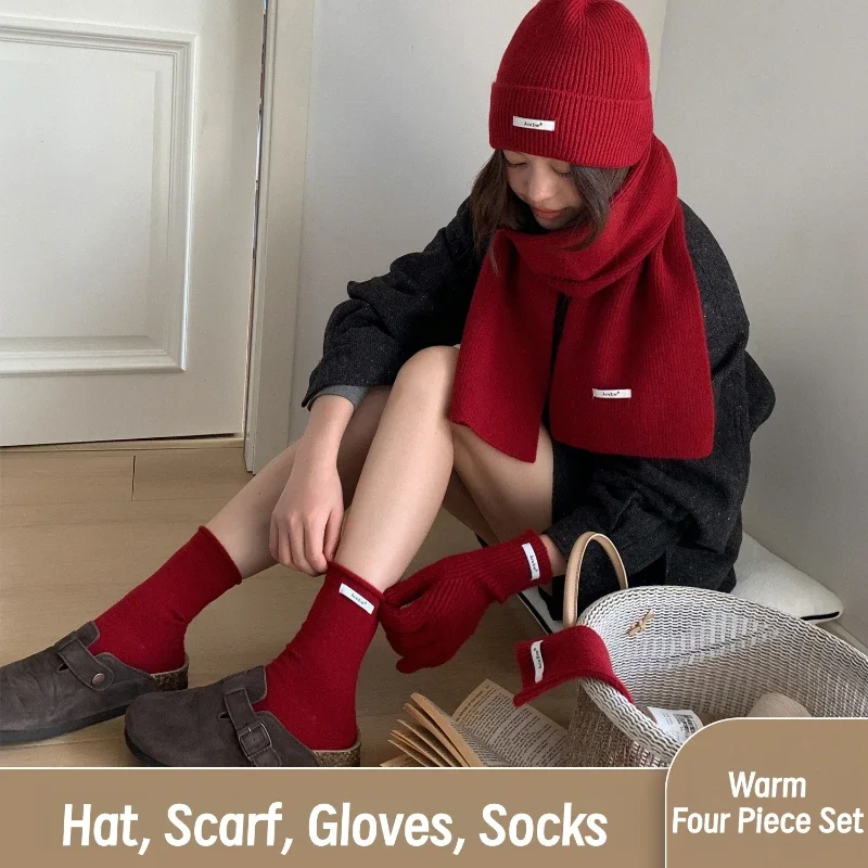 Luxus Frauen Winter Stricken Echt Rex Kaninchen Pelz Hut Schal Set Natürliche Warme Pelzmütze Schal 2 Stück Mädchen Qualität Echtpelz hut Schalldämpfer