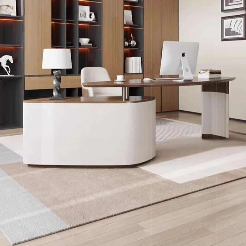 (Weiß lackierter Cheftisch, modern, schlicht und modisch, Persönlichkeitstisch für Führungskräfte, Schreibtisch für Vorgesetzte, Damen, Präsidenten)
