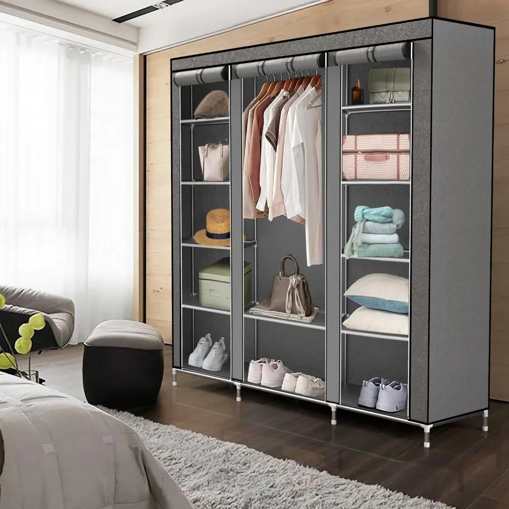 Faltschrank 150 x 175 x 45 cm mit Reißverschluss, Kleiderstange, Seitentasche und Stauraum – DIY Kleiderschrank