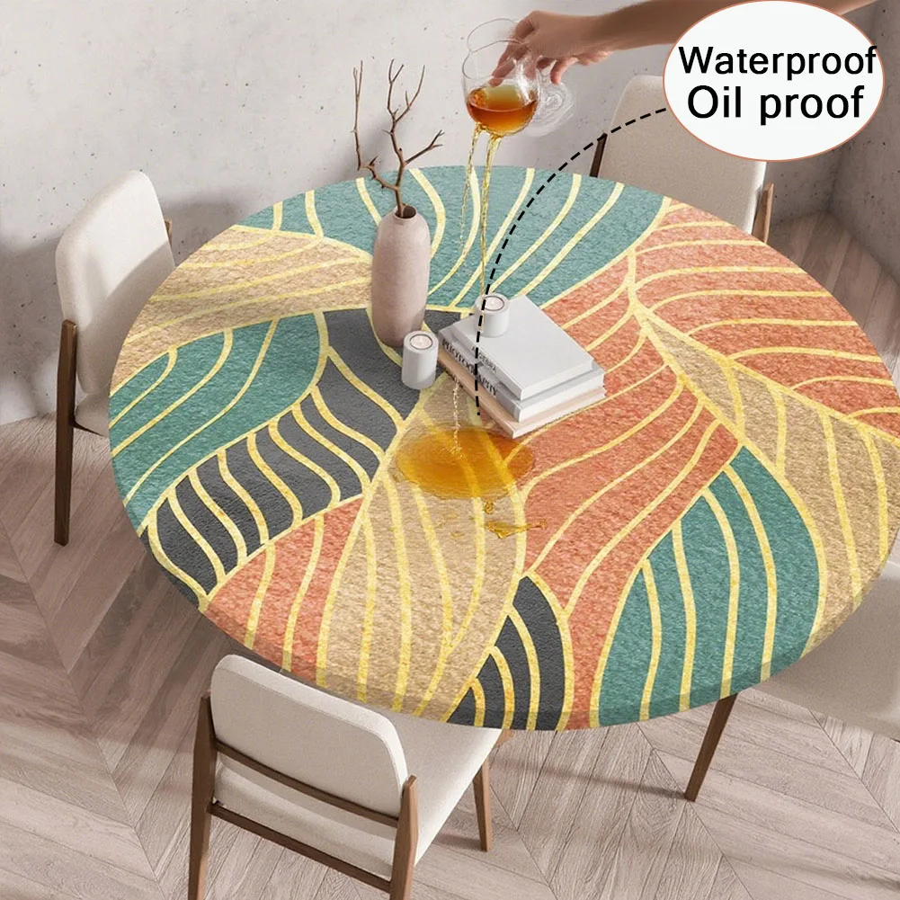 Runde Tischdecke mit minimalistischem Muster, elastische Tischdecken, wasserdicht, wiederverwendbar, runde Tischdecke für Küchensims, rund