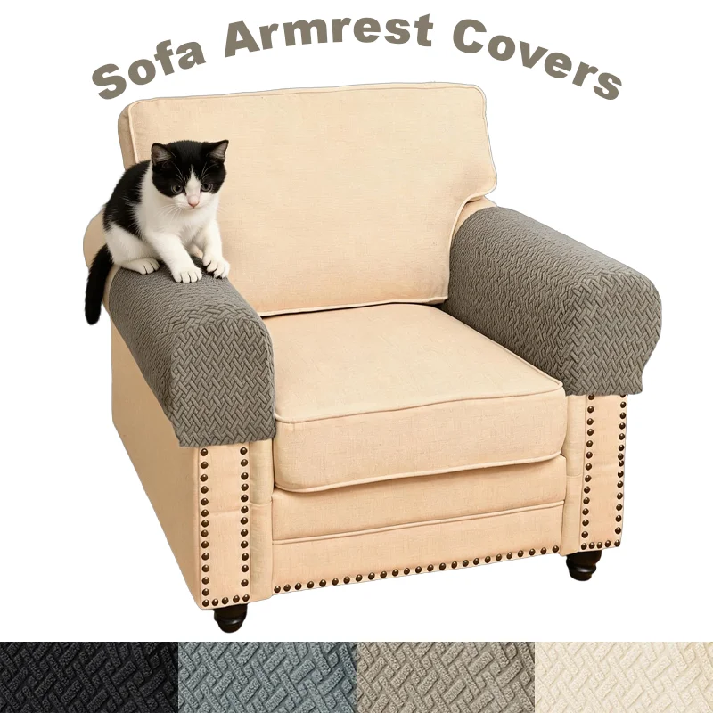 2-teiliges Set Hochelastische Jacquard-Textur Sofa-Armlehnenbezüge Rutschfest Schmutzabweisend Universelle Sesselüberzüge Möbelschutz
