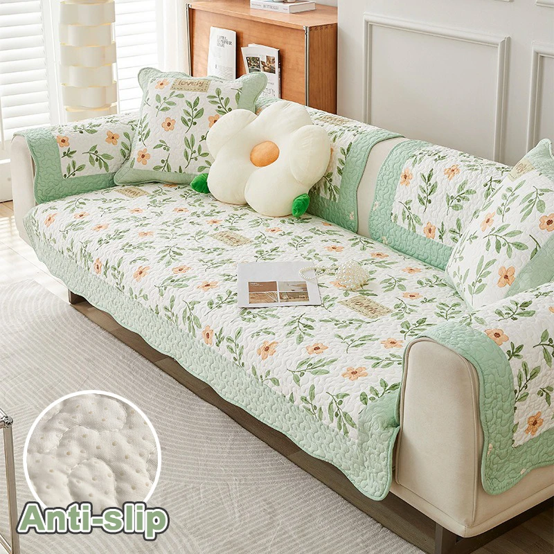 Blumenmuster Gesteppter Sofabezug Rutschfest Ganzjahres-Couchüberwurf Atmungsaktiv Haustierfreundlich Waschbare Auflage für Wohnzimmer Garten Terrasse