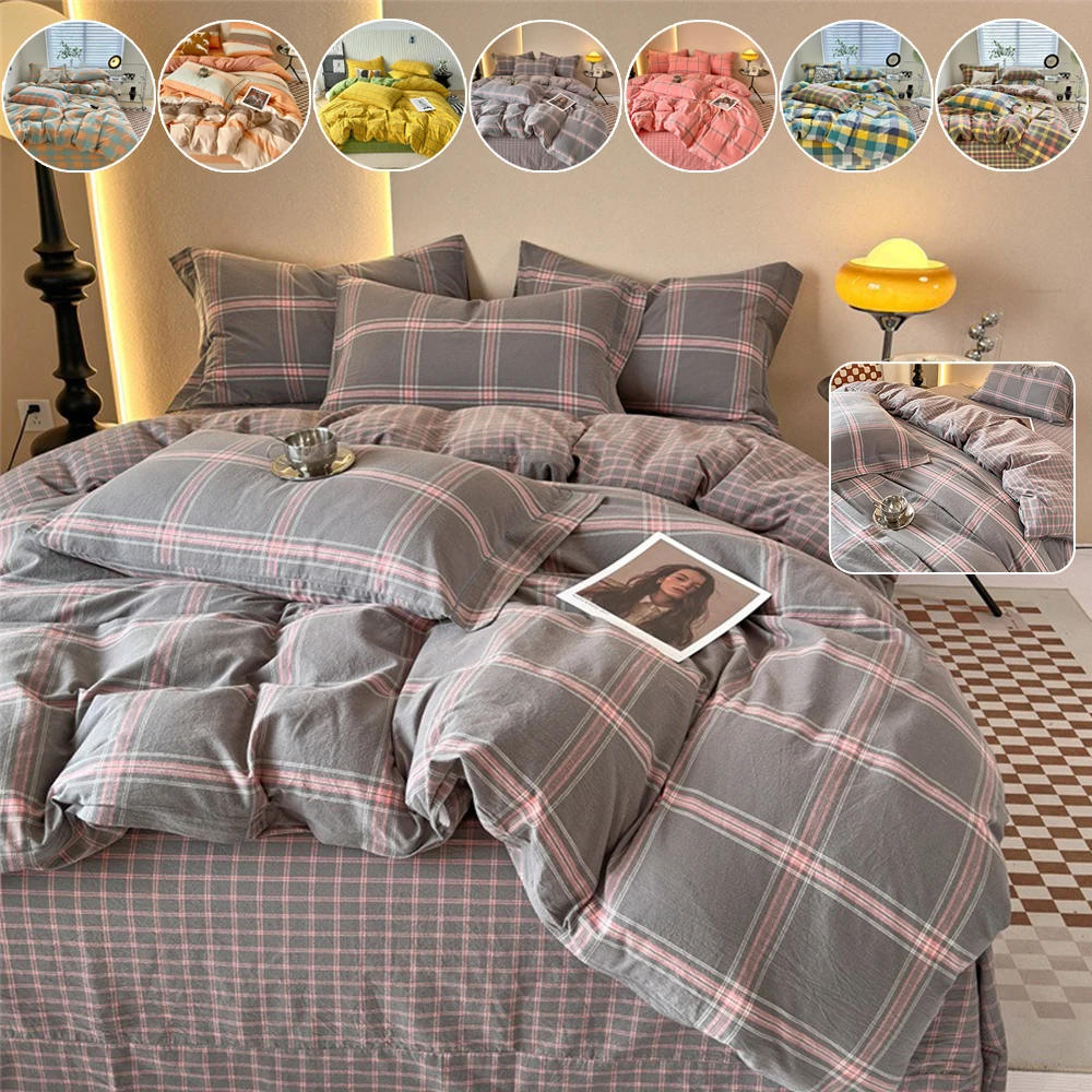 Atmungsaktiver Baumwoll-Bettbezug, kariert, garngefärbt, gewaschen, Einzel-Doppelbettwäsche, hautfreundlich, Queen-Size-Bett, King-Size-Bett, Funda Nórdica Cama 150