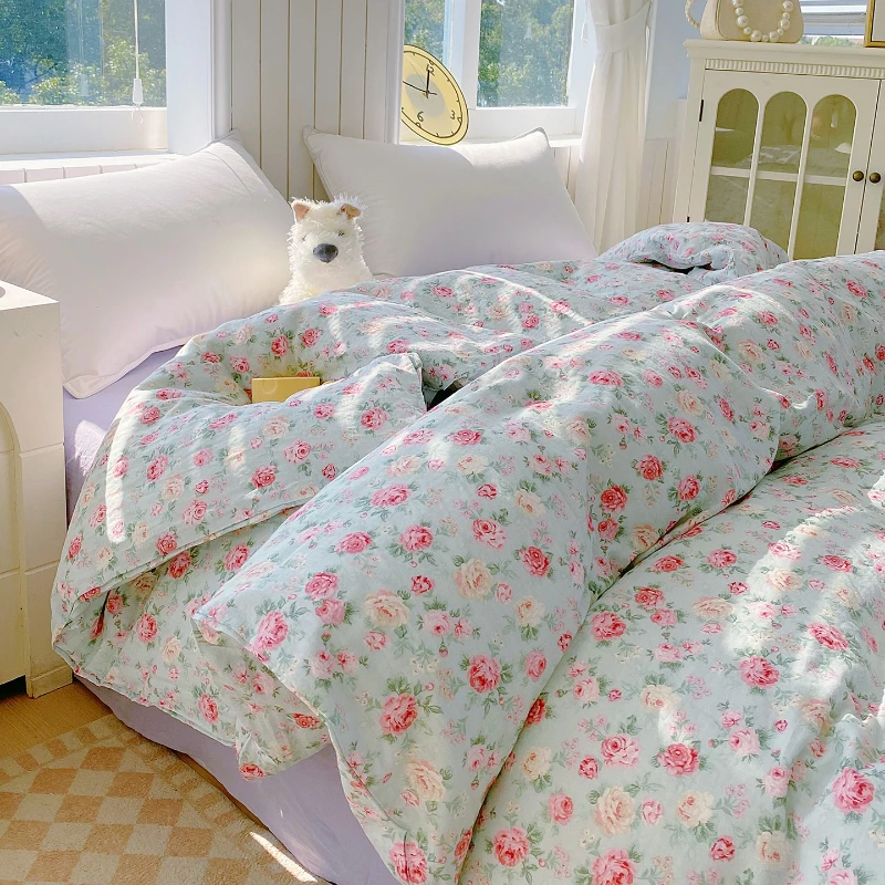 Streifen-Bettbezug aus gewaschener Baumwolle, hautfreundliche, atmungsaktive Bettwäsche für den Einzel- und Doppelgebrauch, Luxus-Bettwäsche für Zuhause, 이불ectura Ropa De Cama