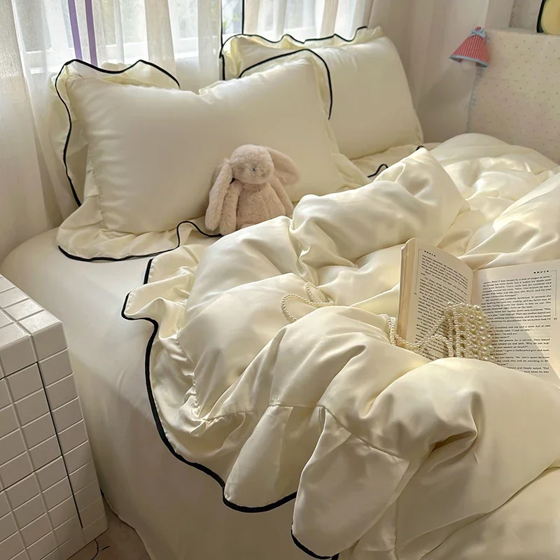 Schwarzes Bettbezug-Set mit Quetschfalte, 2/3-teilig, King-Size-Bettwäsche aus Polyester, Bettwäsche-Sets, luxuriöse Heim- und Hotelgebrauch (keine Füllung, kein Laken)