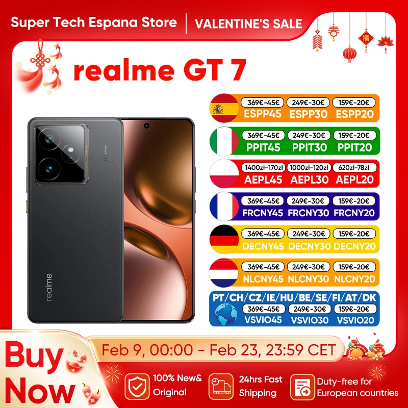 realme GT 7 5G Globale Version Smartphone AI 7000 mAh Titan-Akku 120 W Ultra-Ladedimensität 9400e 6,78 Zoll 120 Hz Display NFC