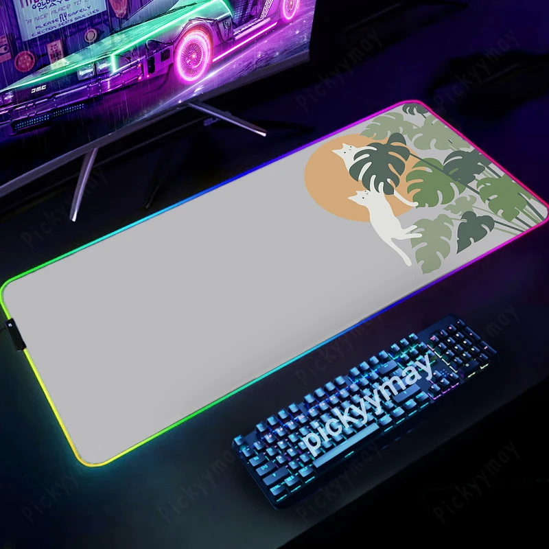Katzen RGB-Mauspad, große Gamer-Mauspads, LED, graue Tischteppiche, Gaming-Mauspad, hintergrundbeleuchtete Laptop-Schreibtischunterlagen, leuchtende Tastaturmatten
