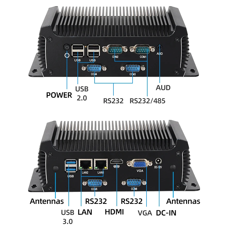 Industrieller Mini-PC Intel 4. 5. CPUs 2x serielle Ports RS232 RS485 2x Gigabit Ethernet 1x Mini-PCIe-Erweiterung Windows7/10 Linux