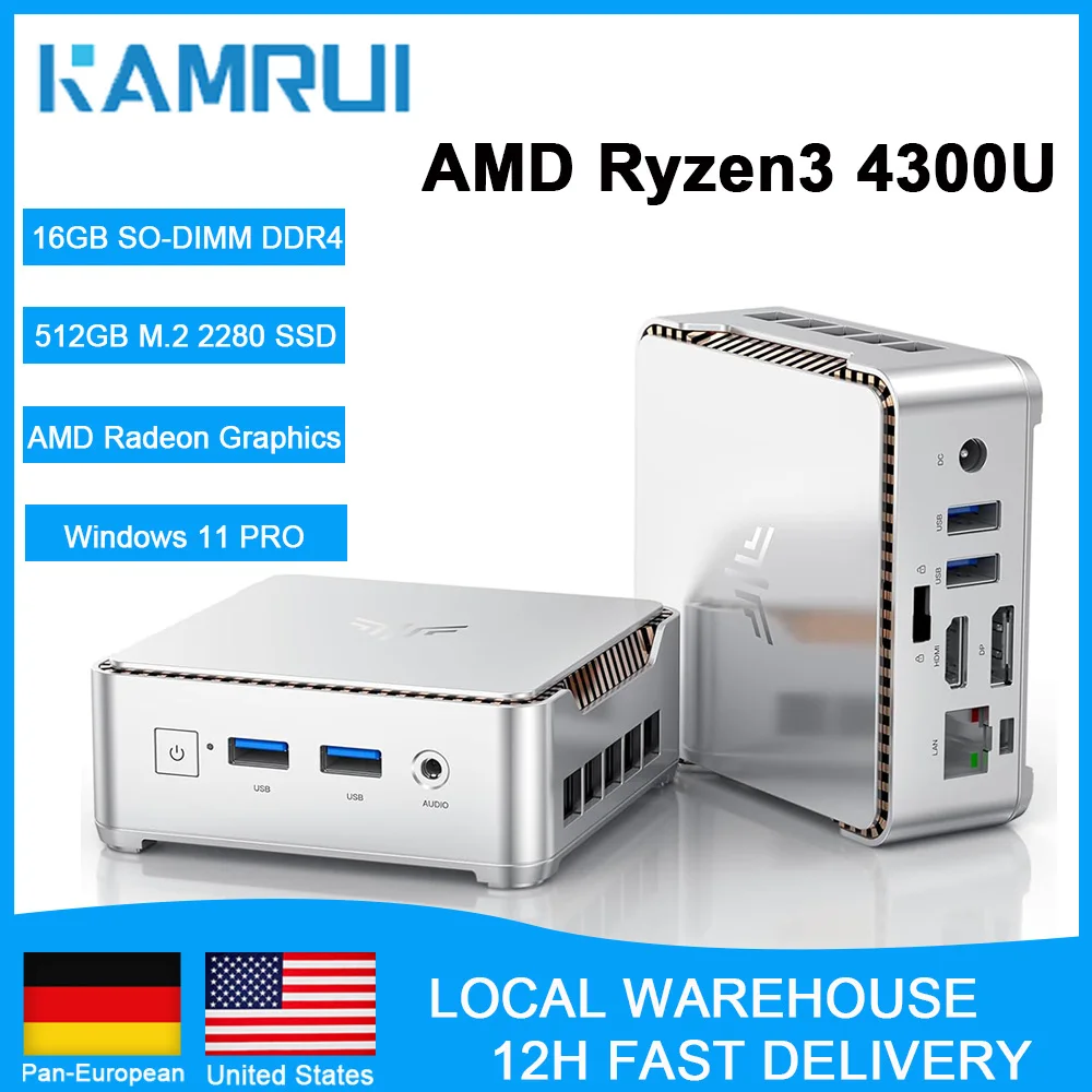 KAMRUI Mini-PC AMD Ryzen 3 4300U 16 GB DDR4 512 GB M.2 SSD Windows 11 Pro Triple 4K Display Mini-Desktop-Computer Micro-PC