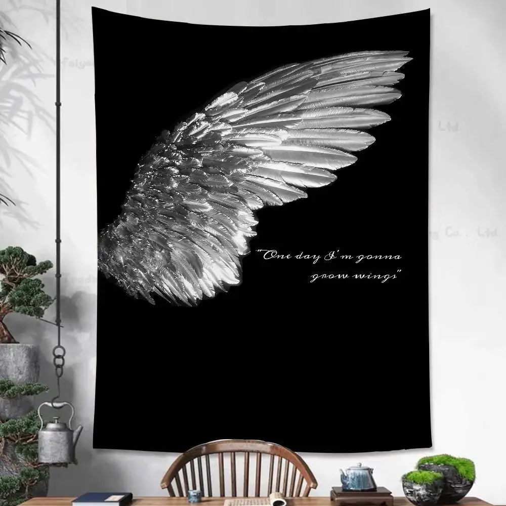 Schwarz-weiße Engelsflügel Wandteppich im Boho-Stil, Mandala, günstiger Hippie-Wandbehang