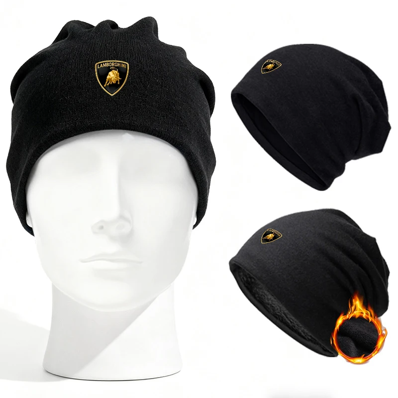 Verstellbare Auto-Logo-Mütze aus hochwertigem Plus-Samt, Wintermütze für Lamborghini Urus Huracan Aventador, Premium-Autozubehör