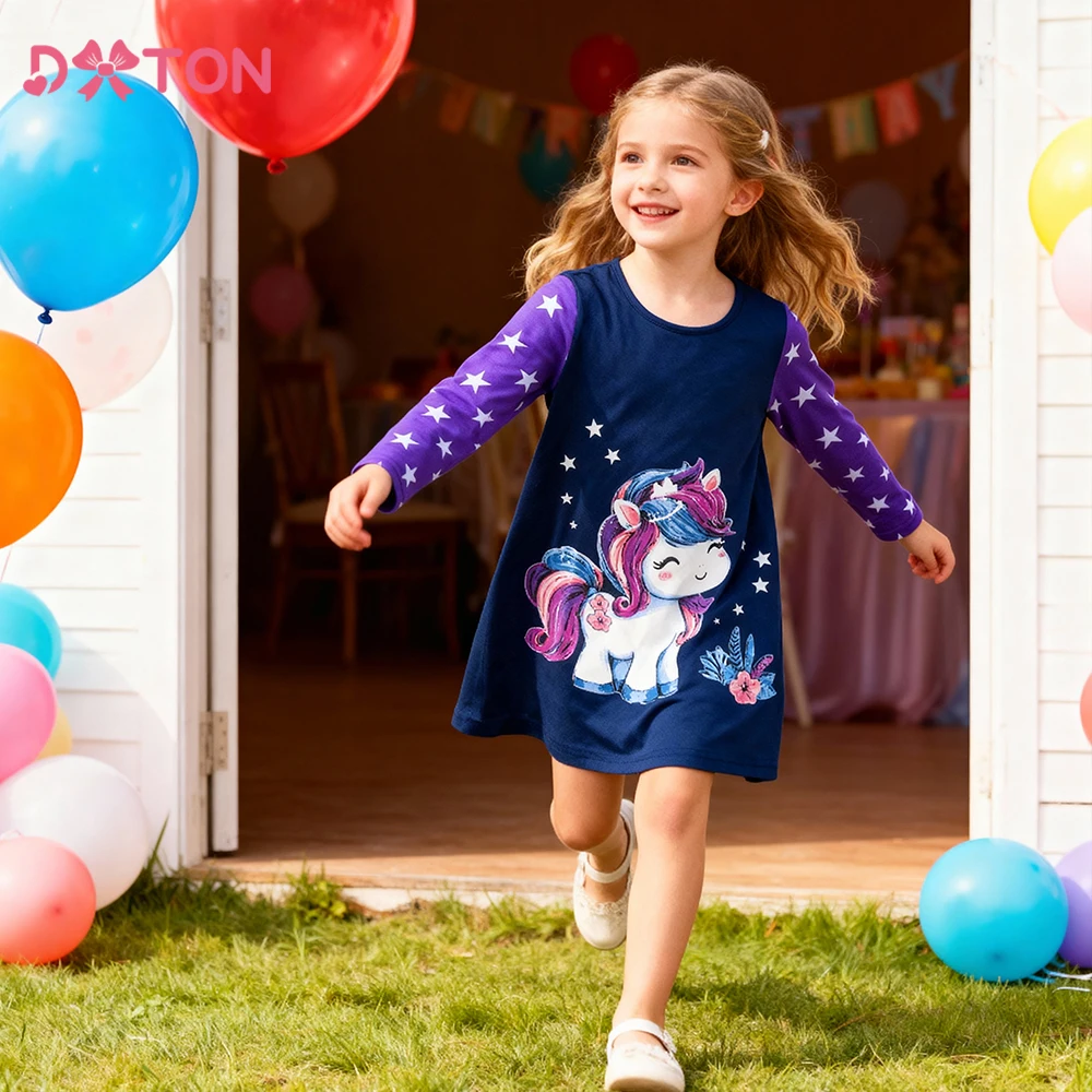 DXTON Winter Kinder Kleid Regenbogen Langarm Kinder Casual Kleid Kleinkind Pullover Baumwolle Kleidung Sterne Druck Mädchen Kleid 3-12Y