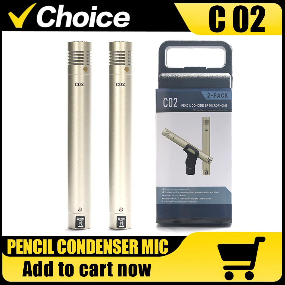 C02 Ein Paar Bleistift-Kondensatormikrofon, kleine Membran-Aufhängung mit Clip, Klavieraufnahmemikrofon, Instrumentenaufzeichnung, Bleistifttyp