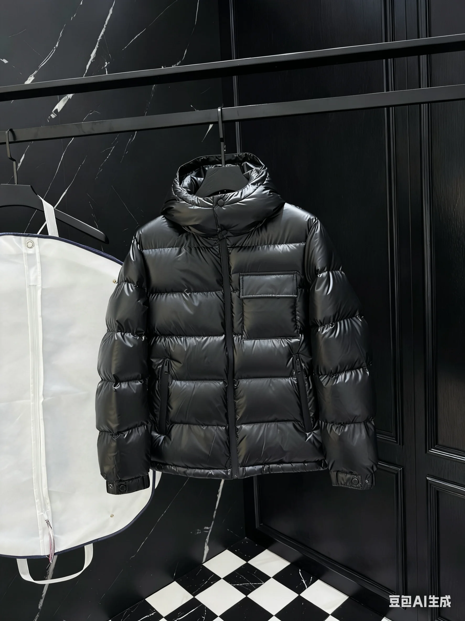 2025, schwarze, glänzende Pufferjacke mit Kapuze für Herren, gesteppt, warm, Winter-Daunenmantel