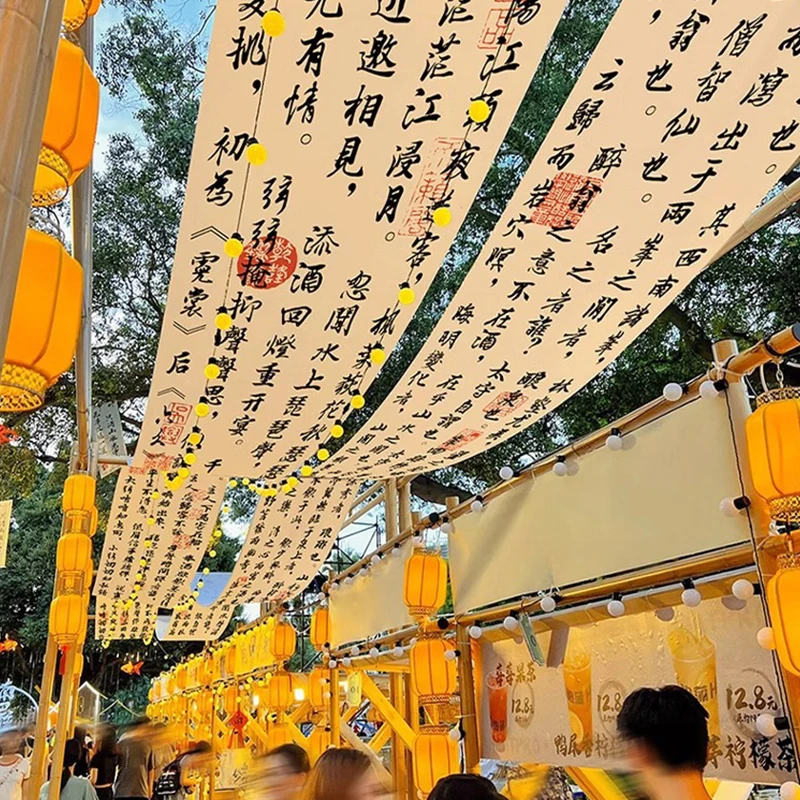 Calligraphy Ceiling Valance Japanese Izakaya Sky Canopy for Indoor Tavern Decoration Camping Barbecue Atmosphere Decor