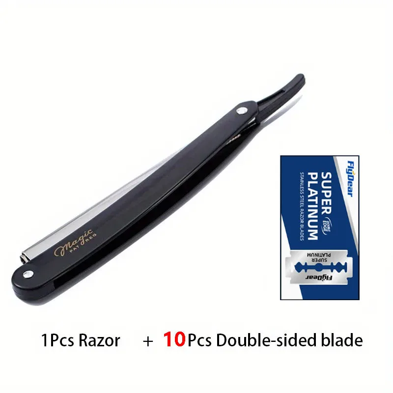 Stainless Steel Foldable Manual Razor | 10-Pack Replacement Blades | Men's Grooming Essential for Smooth & Close Shave