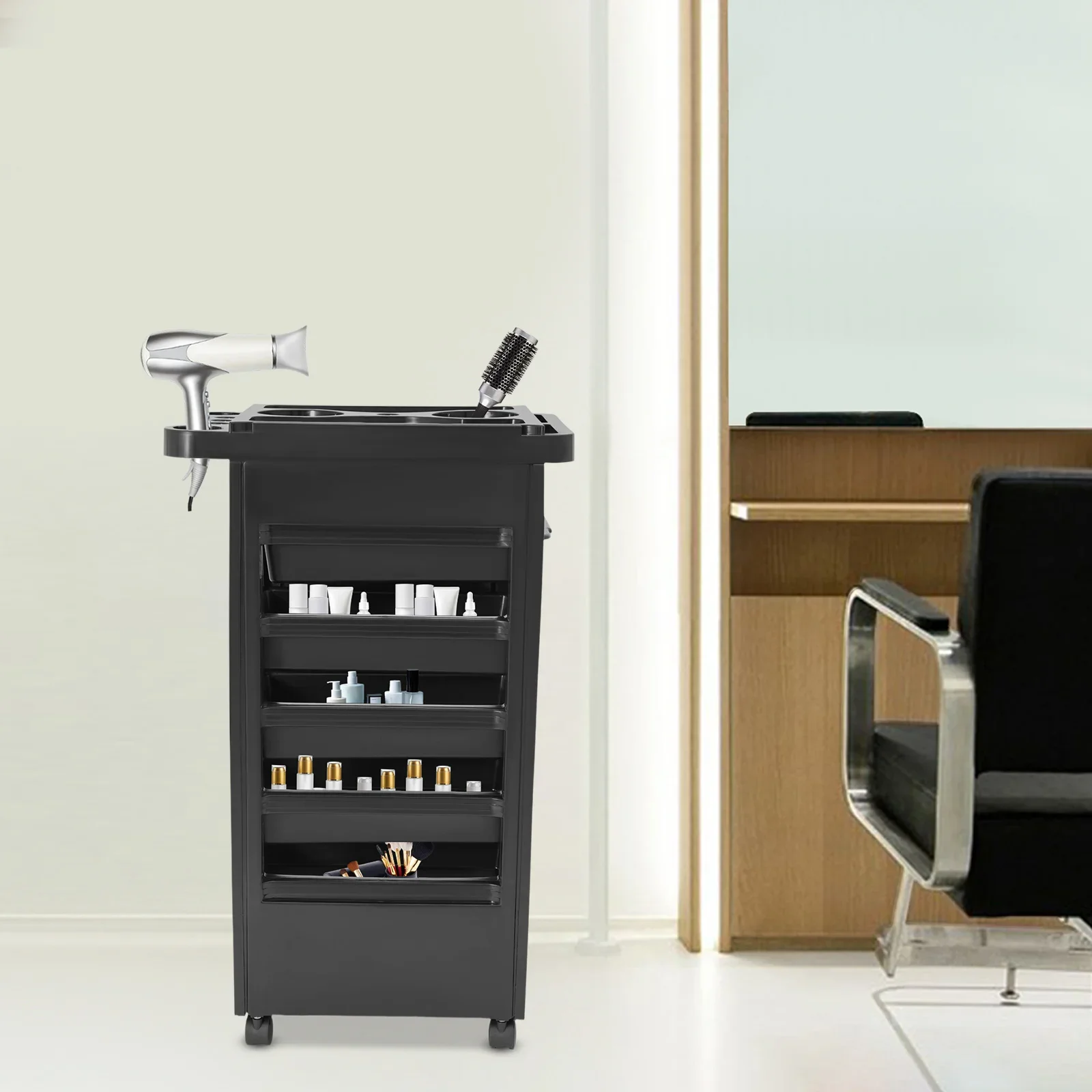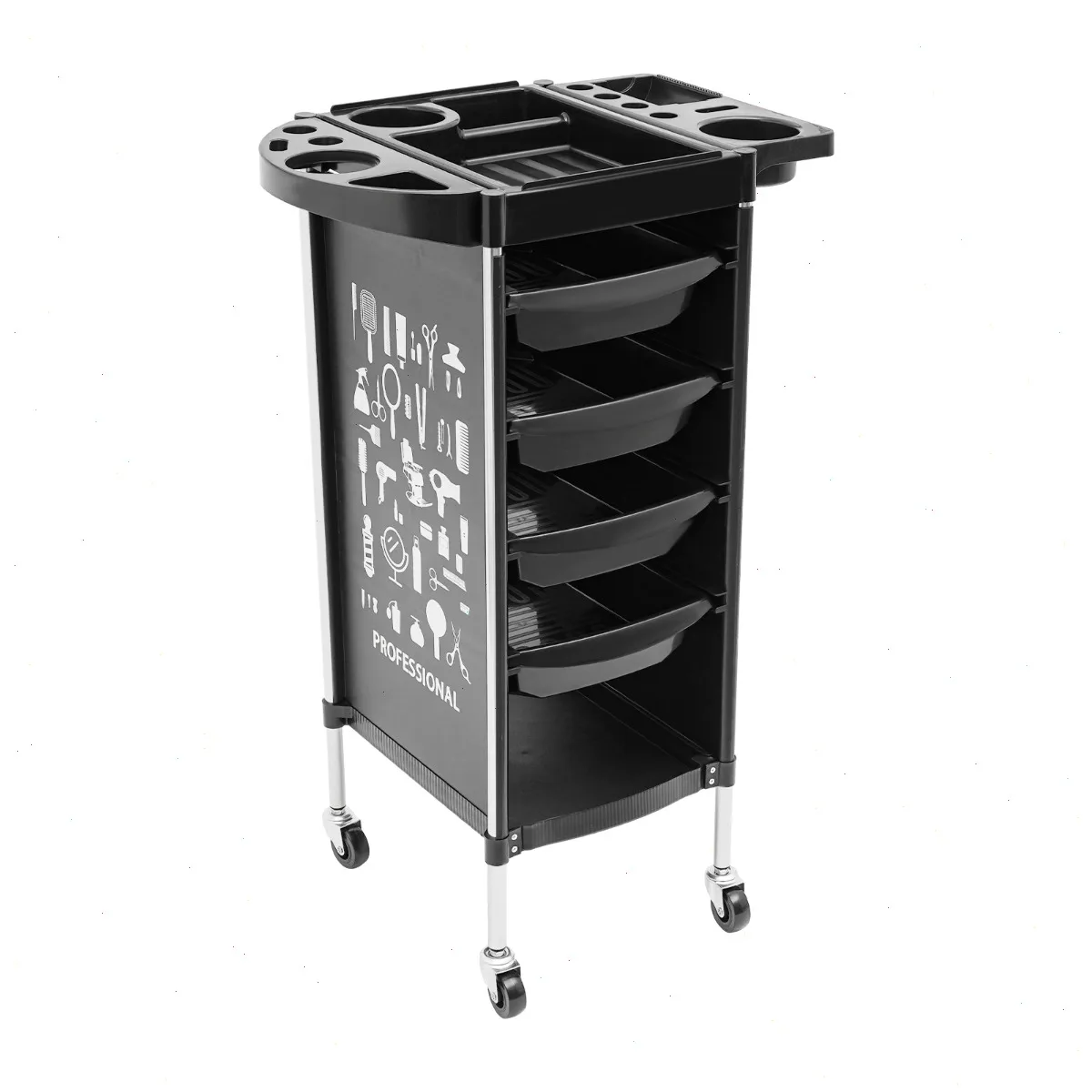 Beauty Trolley Cart, 4 Drawers Black Salon Trolley, Mobile Styling Station for Salon Tools, Barber Shop, Makeup, Hairstyling