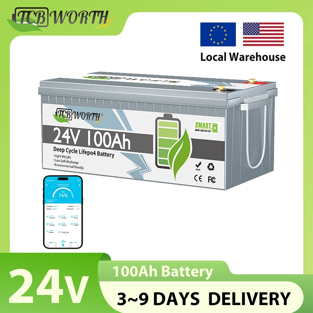 24V 100Ah LiFePO4 Lithium Battery,6000+ Deep cycles,Built-in 100A BMS 2560W,for Marine,Kayak,Boat,Golf Cart,RV,Solar,Home