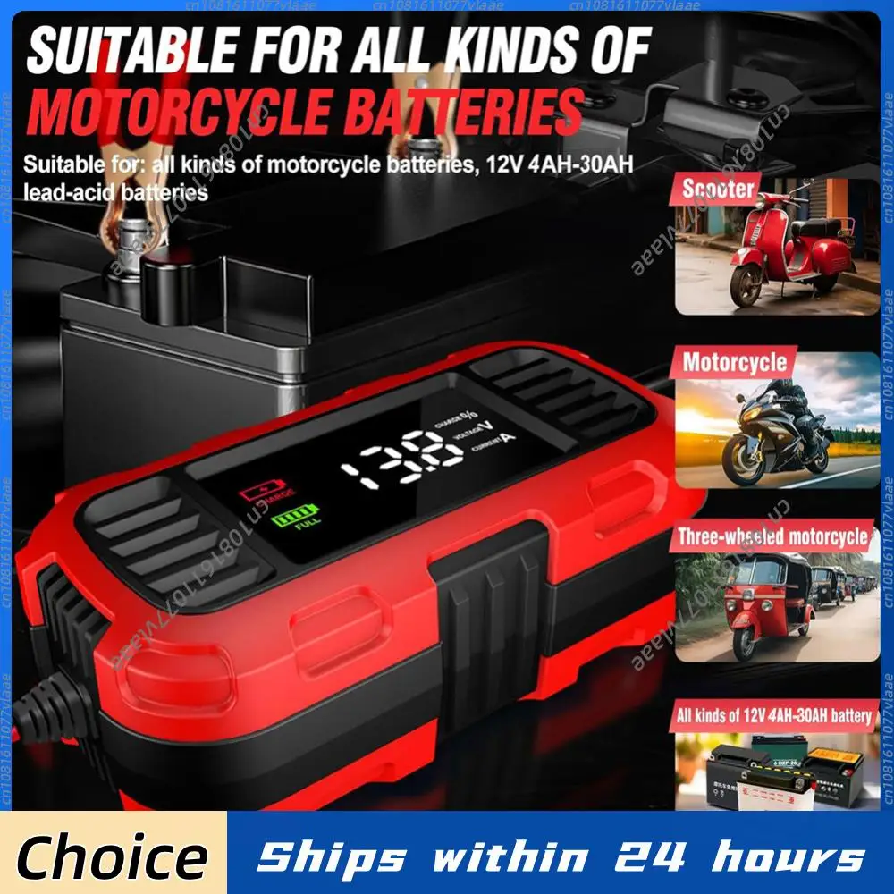 12V 2A Car Battery Charger Digital Display Motorcycle Battery Charger Fully Automatic Battery Charger for Motorcycle Batteries