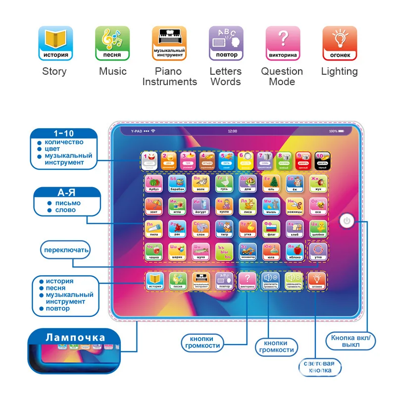 Kids Preschool Electronic Book Russian Alphabet Baby Learning Toys Reading Machines for Children Language Tablet Educational Toy