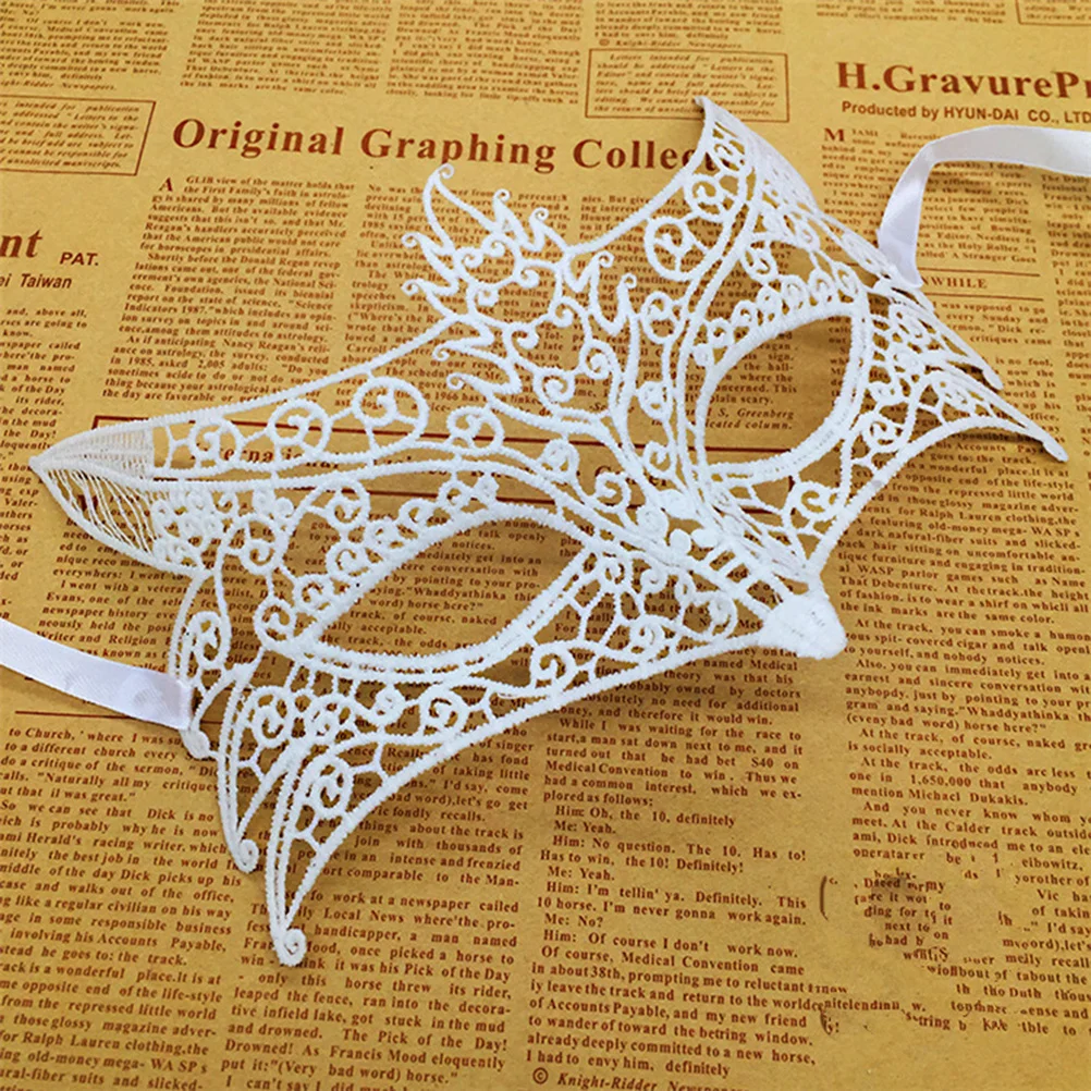 Elegant White Lace Masquerade Mask Hollow Pattern for Prom Party Evening Event Women's Fashion Accessory