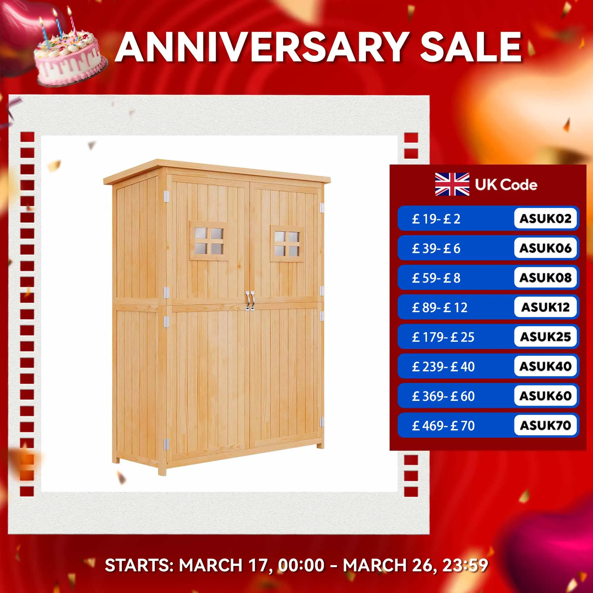 Wooden Garden Shed Tool Storage Cabinet Organizer Double Door Shelf 5FT 2 Color