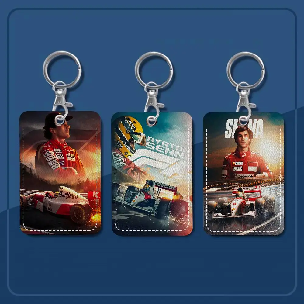 A-Ayrton Senna Rectangle ID Card Case Keychain Access Card Bag Key Tag Ring Leather Card Holder Key Ring Access