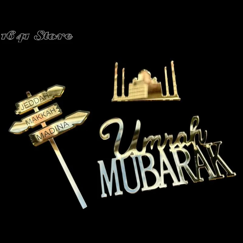 Hajj and Umrah Mubarak– Personalized Golden Acrylic Cake Topper for Birthdays