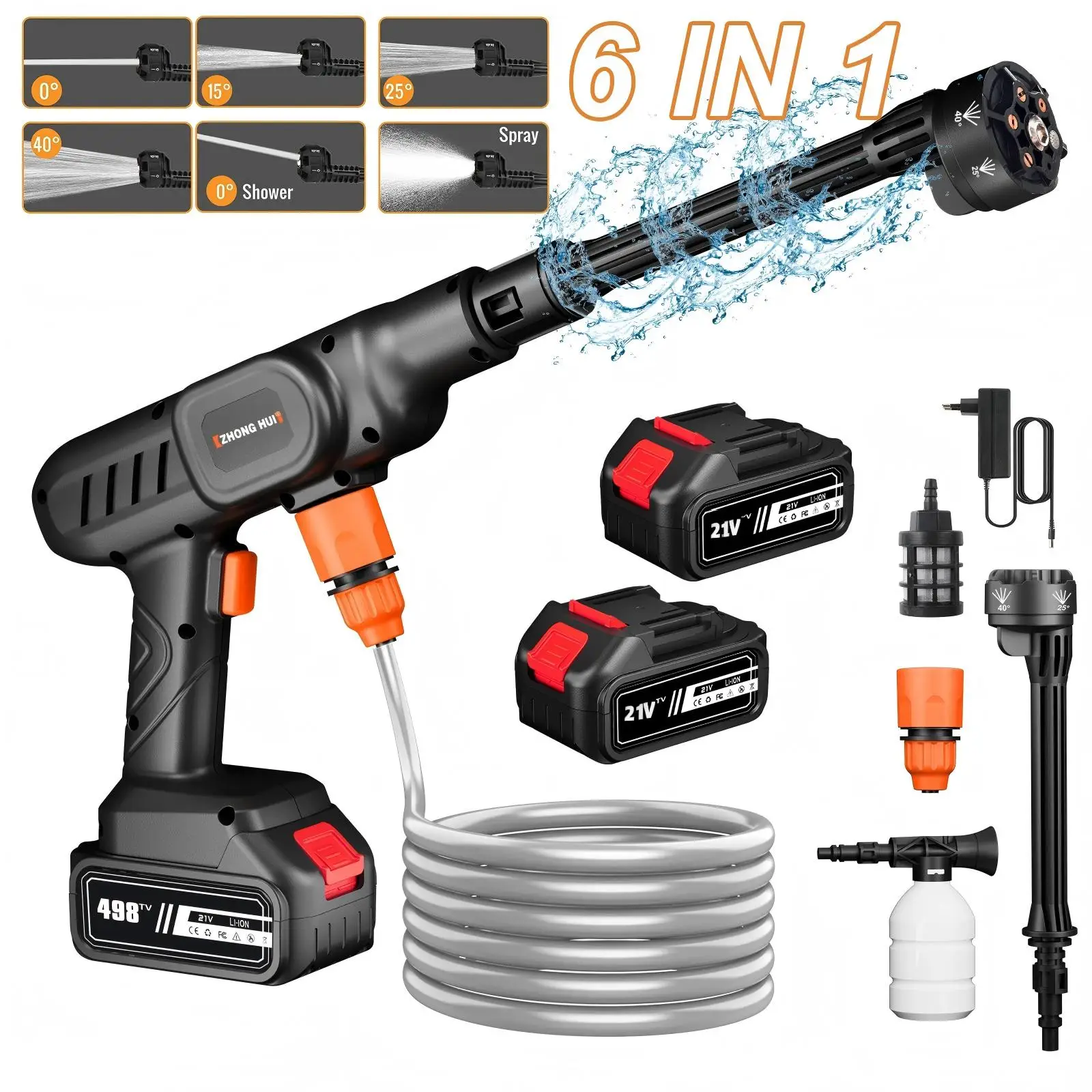 6-in-1 Nozzle 60BAR Cordless Lithium-Ion High-Pressure Car Wash Gun for Makita 21V Batteries Ideal for Yards and Gardens