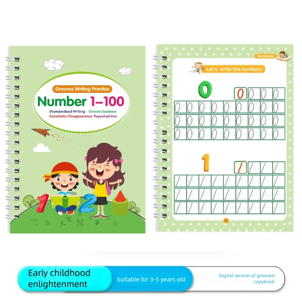 Portable English Groove Copybook for Children Control Pen Training Book Drawing Numbers Education Copybooks Practice Writing