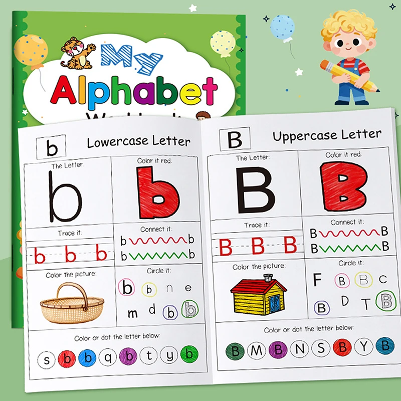 48 Pages, A-Z Alphabet Exercise Book, Writing Practice, Creative Coloring Adventure English Homework Copybook