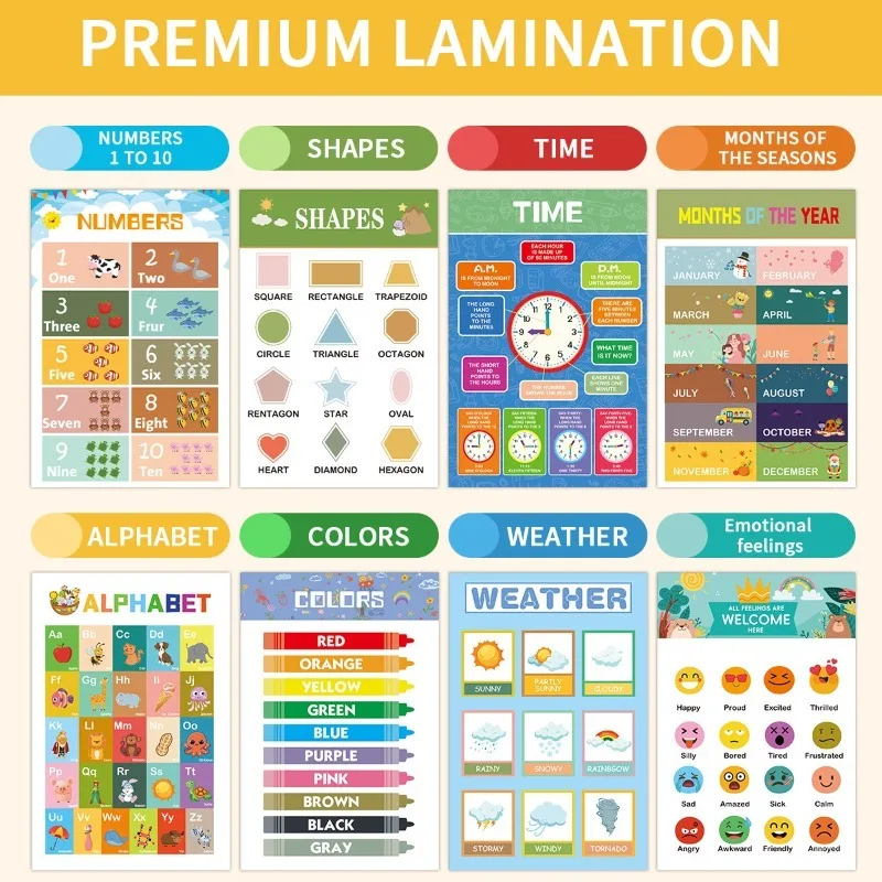 English Children's Learning Early Education Wall Chart Education Poster Pinyin Alphabet Math Weather Time Learning Chart