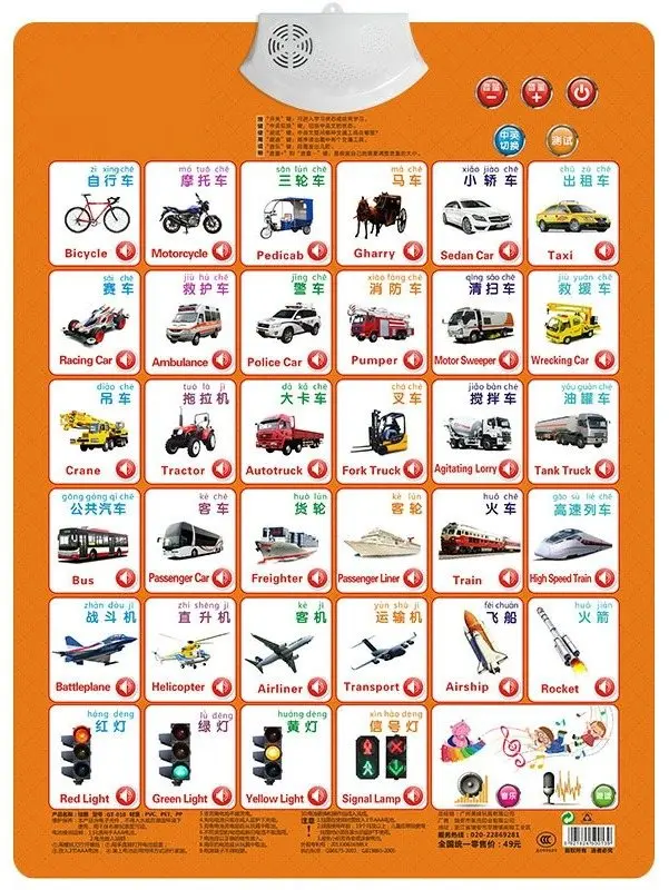 Traffic Light Vehicle Card Book Baby Sound Wall Chart Early Educational Enlightenment Electronic Learning Machine Toys For Kid