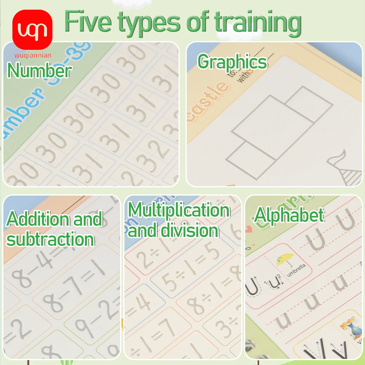WQN-5pcs/set Montessori Reusable Writing Magic Practice English Calligraphy Book For School And Office Stationery Supplies