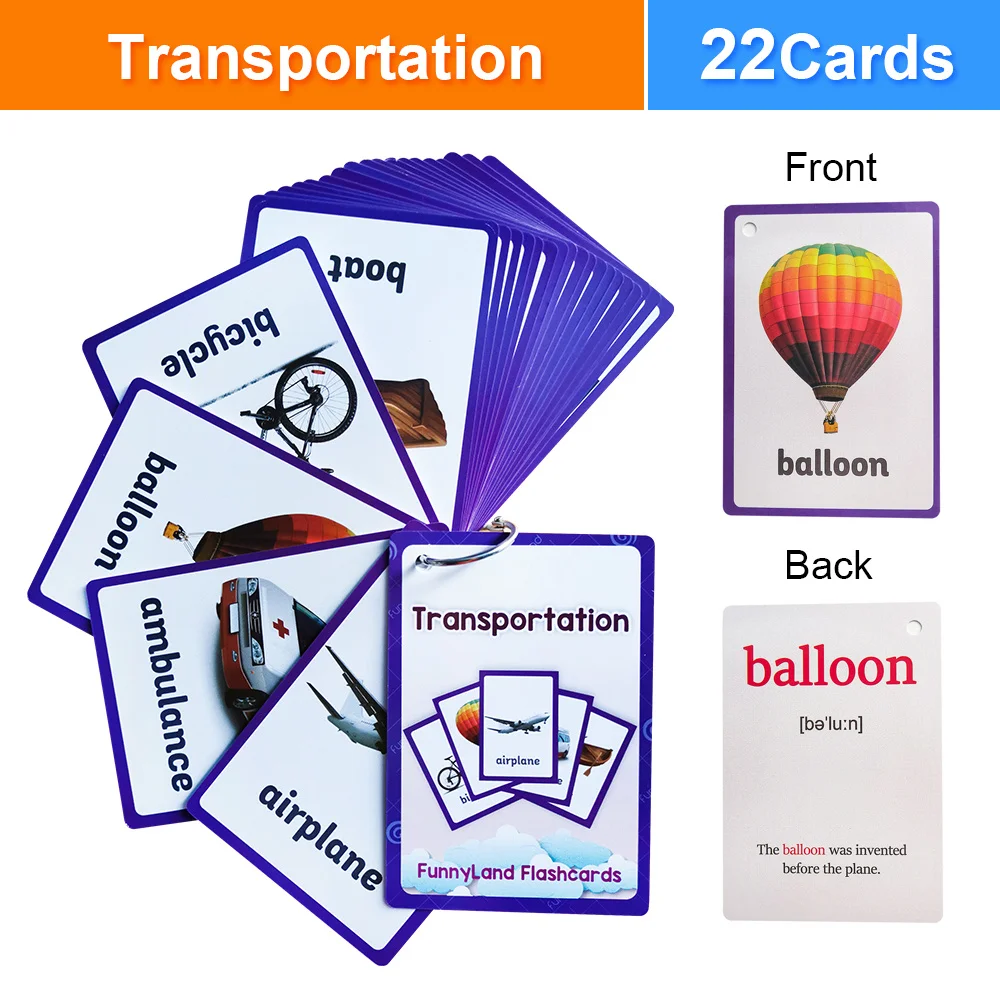 22Pcs Transportation Theme Educational Learning Cards for Kids Preschool Vocabulary Cognitive Flashcards Teaching Aids