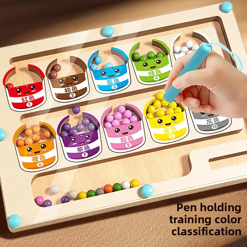 Wooden Magnetic Counting Operation Color Classification Magnetic Pen Bead Shift Game Educational Early Education Toys