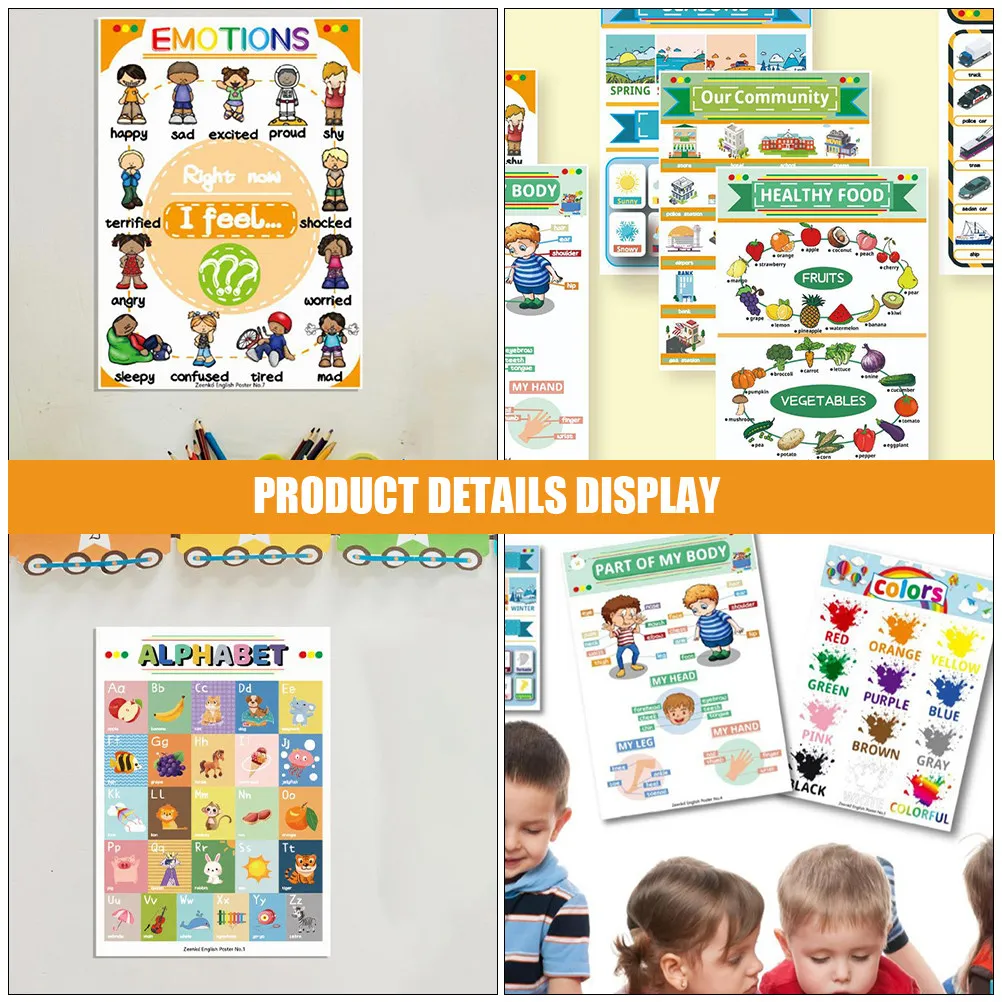 12 Sheets English Learning Posters Kids Preschool Educational Wall Charts Wear-Resistant Rounded Corners Cognitive Shapes Bright