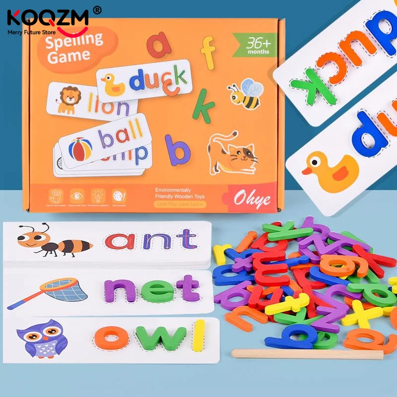 52Pcs Baby Puzzles Montessori Games With 28pcs Learning Cards English Alphabet Spelling Word Wooden Educational Toys For Kids