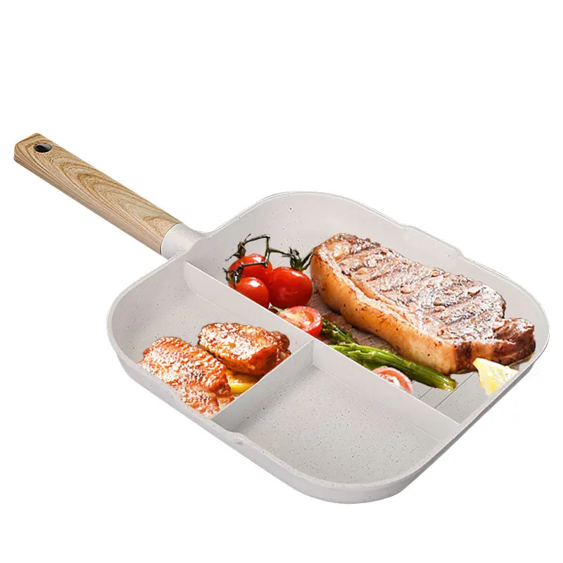Large Nonstick Grill Pan Skillet Square 3 In1 Divided Egg Pan Breakfast Omelette Frying Pan Hamburger Steak Cooking Pan Cookware