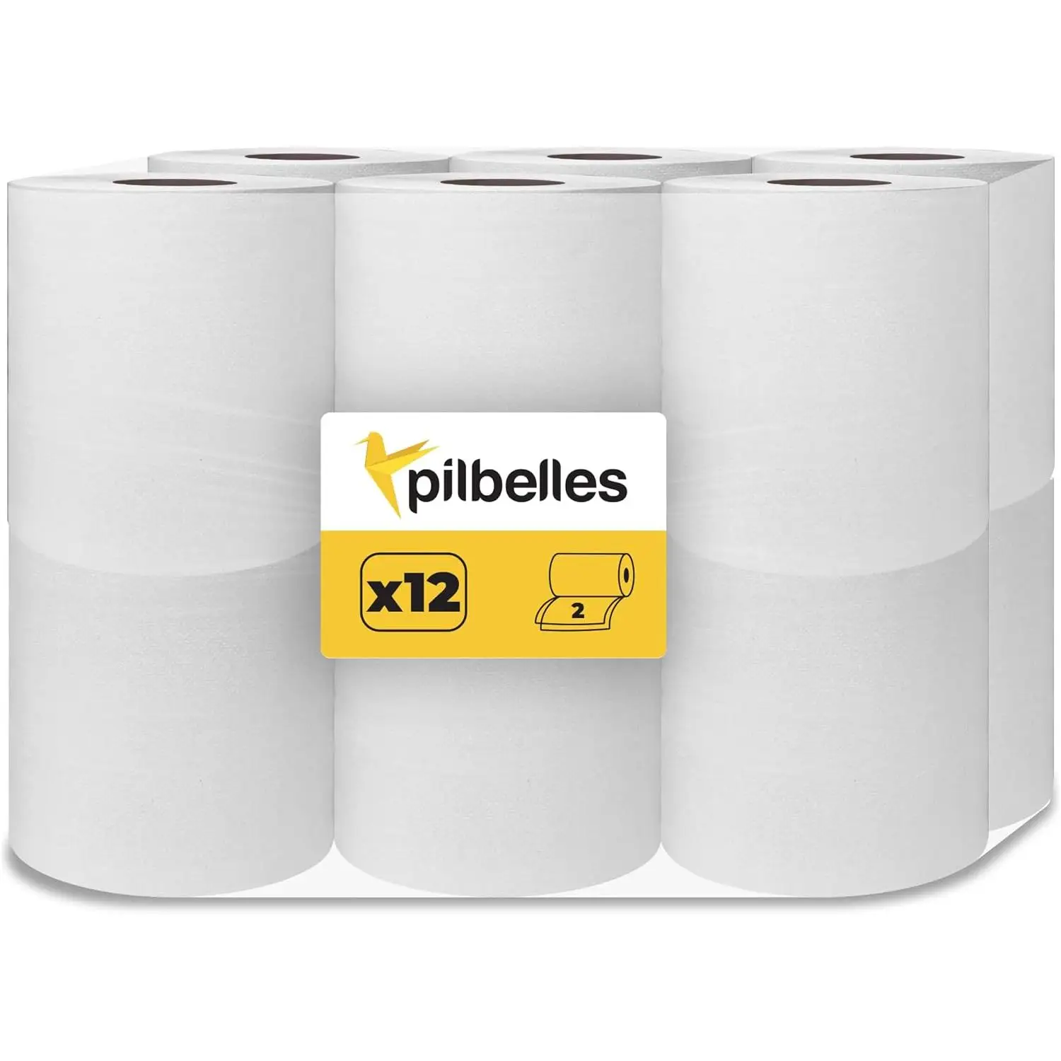 Pilbelles Rollos Papel Mecha Secamanos 100m, Industrial Paper Towels, 2-Ply, Compatible with Dispensers, 450 Services per Roll, Ideal for High Traffic, Superior Absorbency and Durability for Professional Use.