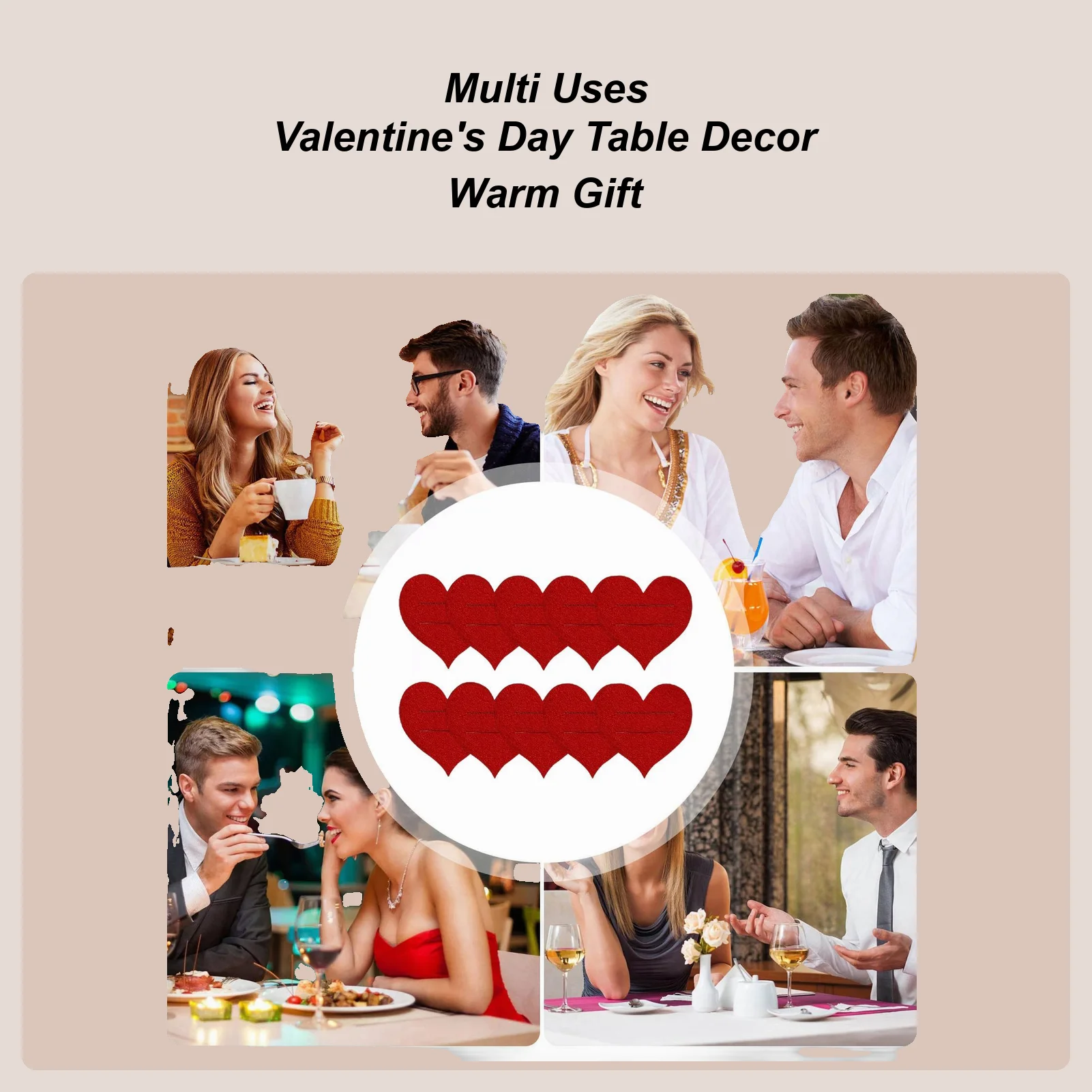 Utensil Holder 10 Piece Heart Tableware Covers Felt Cutlery Holder For Party For Wedding Birthday Mother's Day Engagement