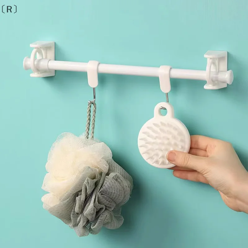 〔R〕Punch-free Curtain Rod Hooks 360 Degree Rotation Self-adhesive Wall Bracket Clamp Shower Curtain Hanging Rod Ring Kitchen Hoo