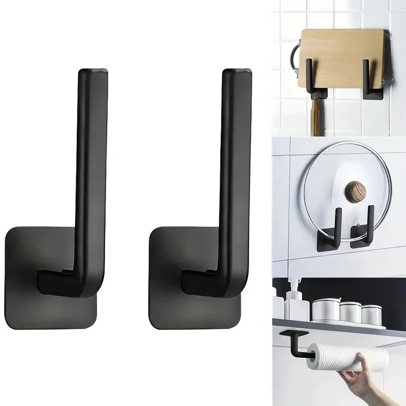 2/4/6PCS L-Shaped Plastic Adhesive Hooks L-shaped Self-Adhesive Hooks Kitchen Tissue Holder Towel Storage Toilet Paper Holder