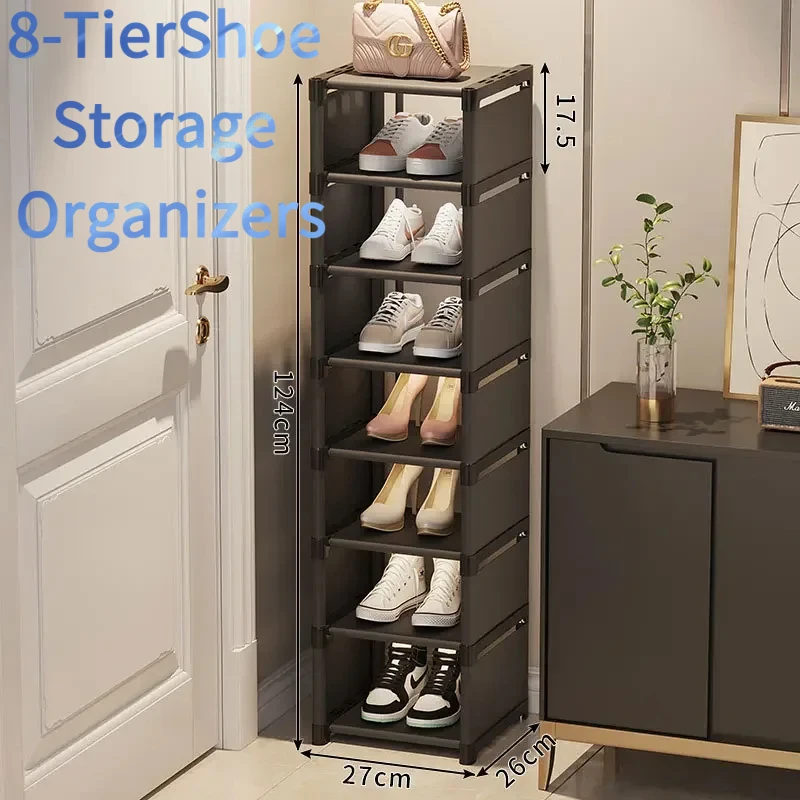 8-Tier Black Shoe Rack Organizer, Multi-Layer Storage Shelf for Living Room, Easy Assembly Shoe Cabinet