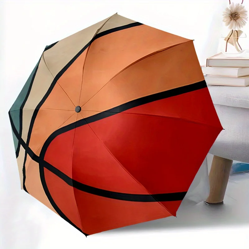 1pc Basketball Sport Automatic Open 8-Rib Windproof Umbrella, Travel & Commuting, Suitable for All Seasons, Lightweight Portab